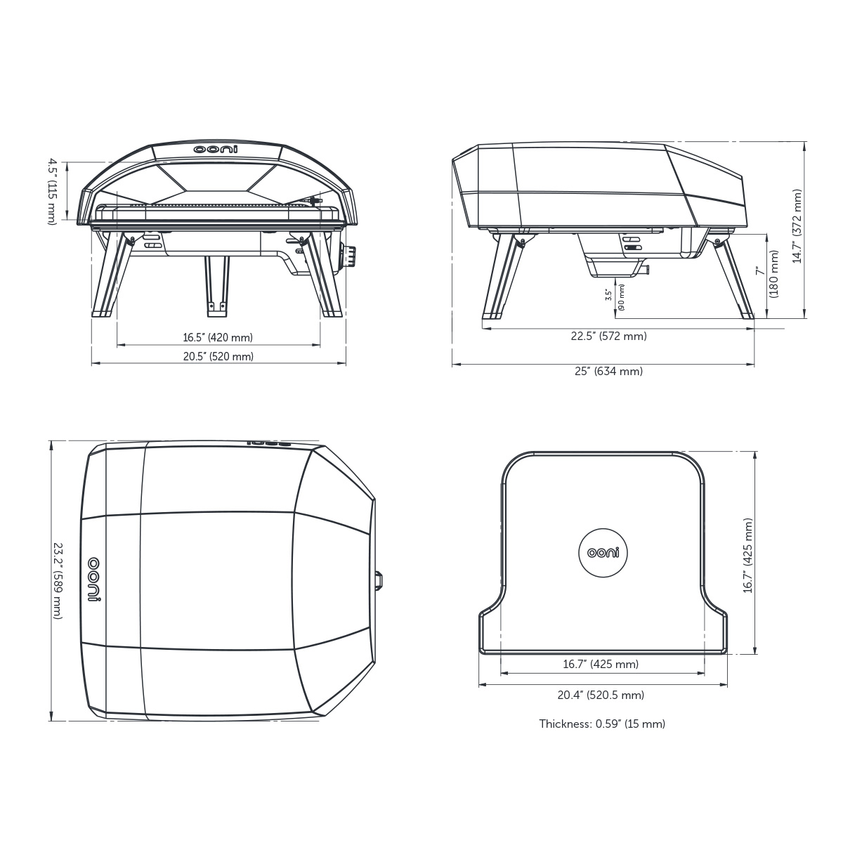 Cooks epic 16” (40 cm) pizza with an authentic stone-baked base.
