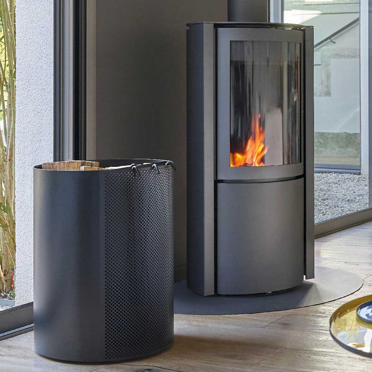 Factory Style Inspired by the industrial world, this 2-in-1 log rack is made up of a fully punched front panel, revealing the 4 accessories for maintaining fires and fireplaces