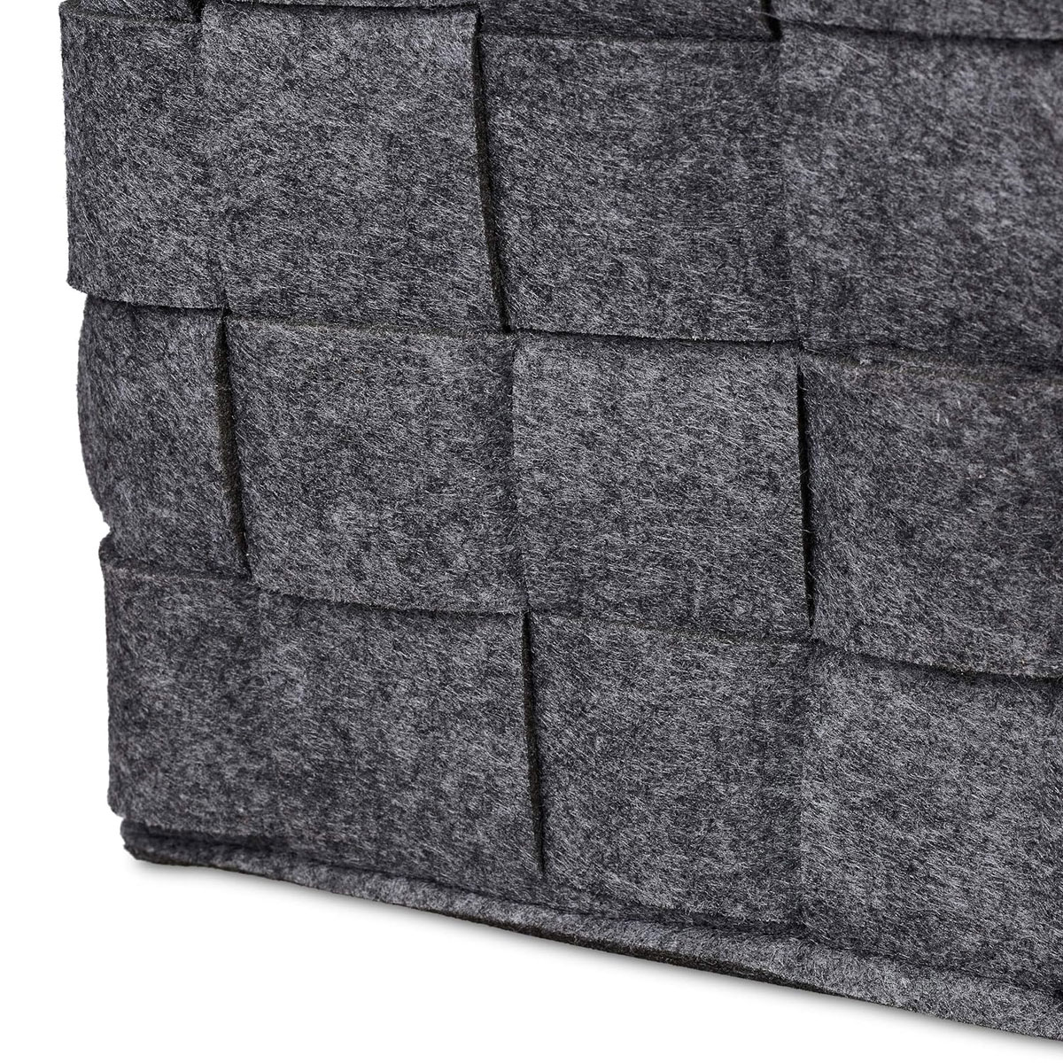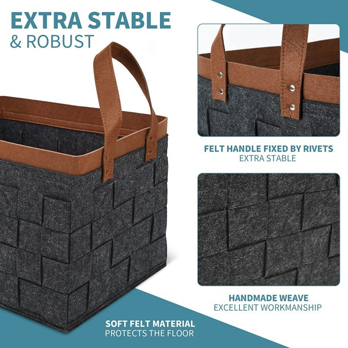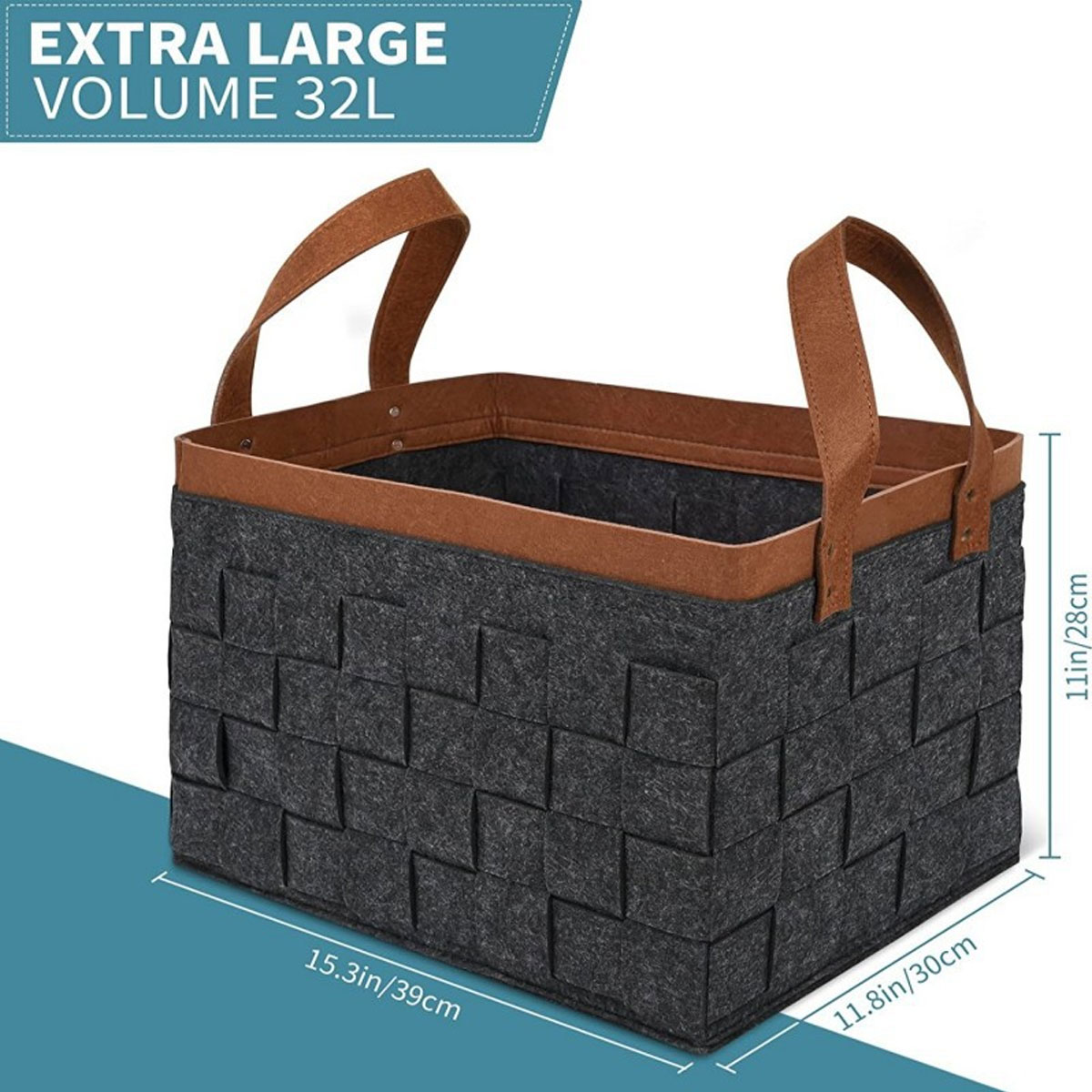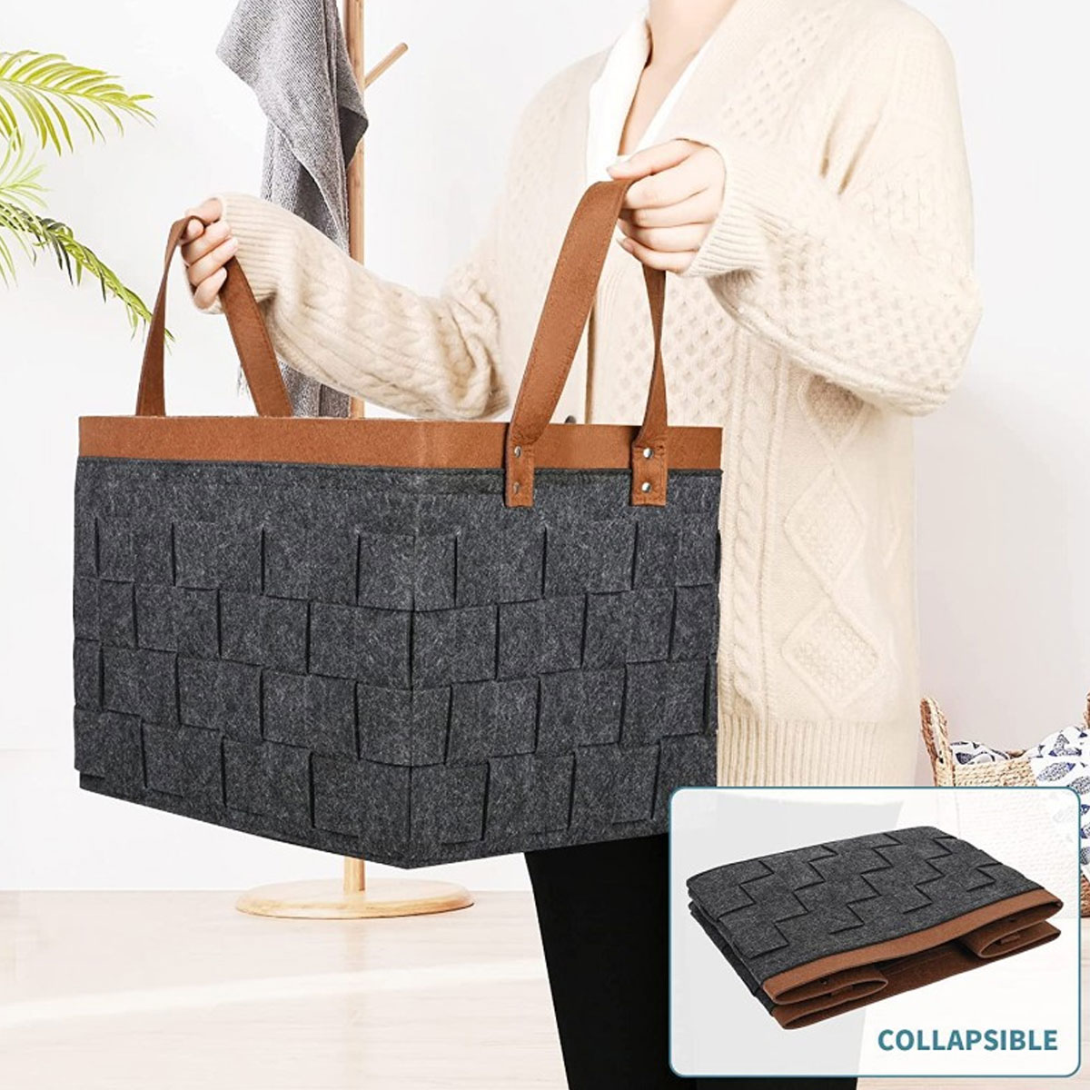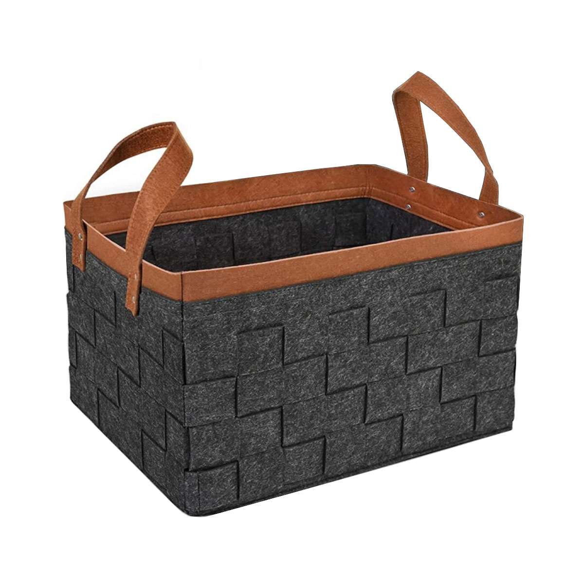 Two brown faux leather handles make the basket easy and comfortable to carry