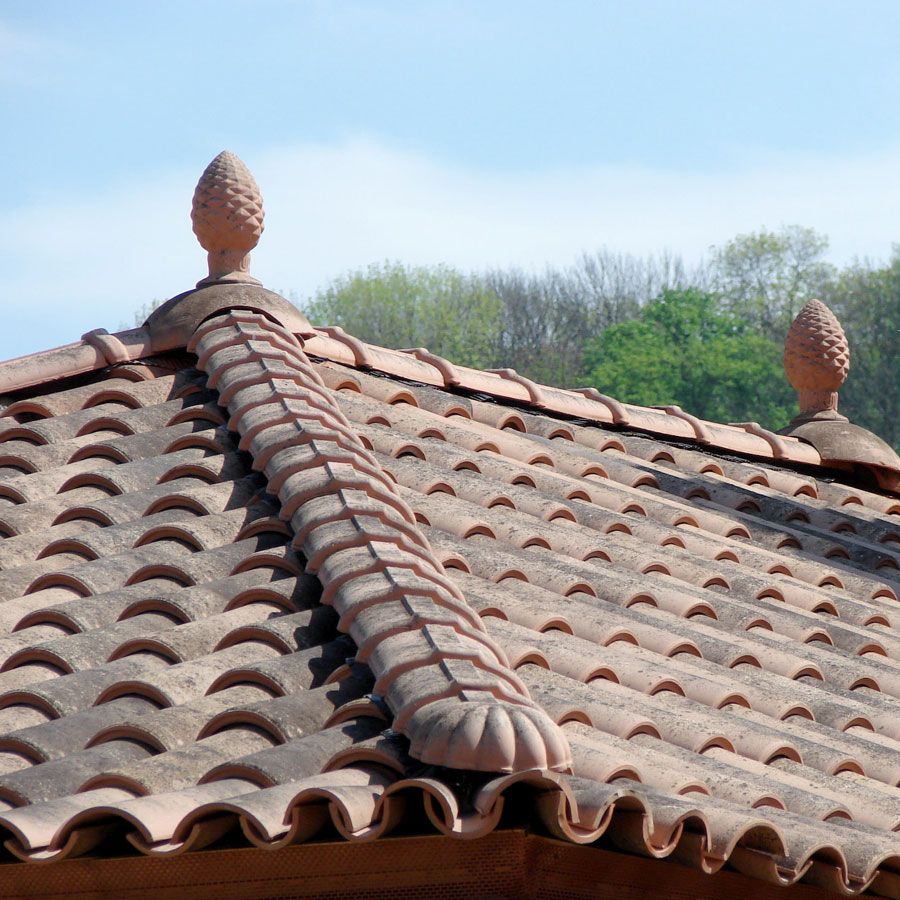 Traditionally, this 2 pieces tile, also referred to as Mission barrel, has been the most frequently used roof tile in Europe and in Spanish Colonial Buildings in the New World. Today, this tile is used in the construction of new homes, due to the beauty and wide variety of colors available. It is also used to restore beautiful historic roofs that have been deteriorated by natural weathering over time.