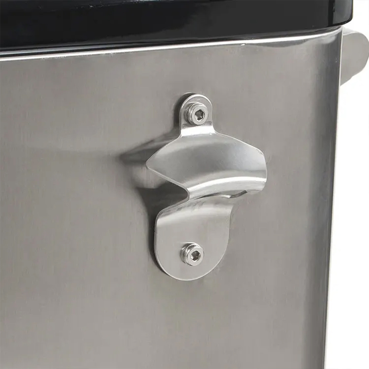 Attached bottle opener and cap catcher for convenience.