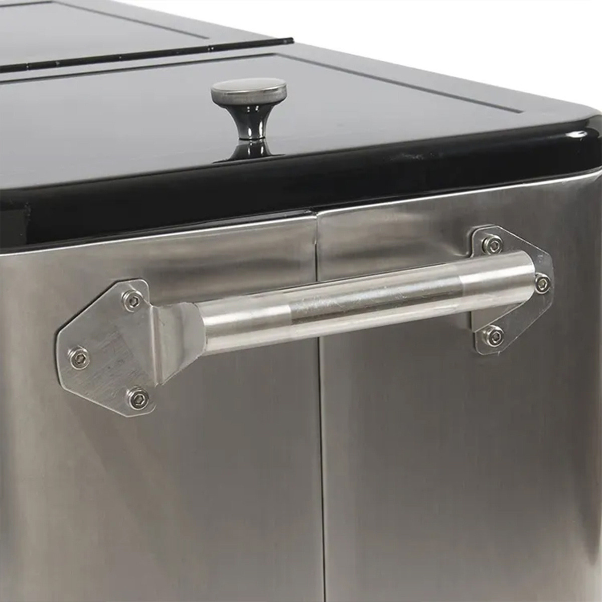 Two-sided easy access lid with solid aluminum knobs.