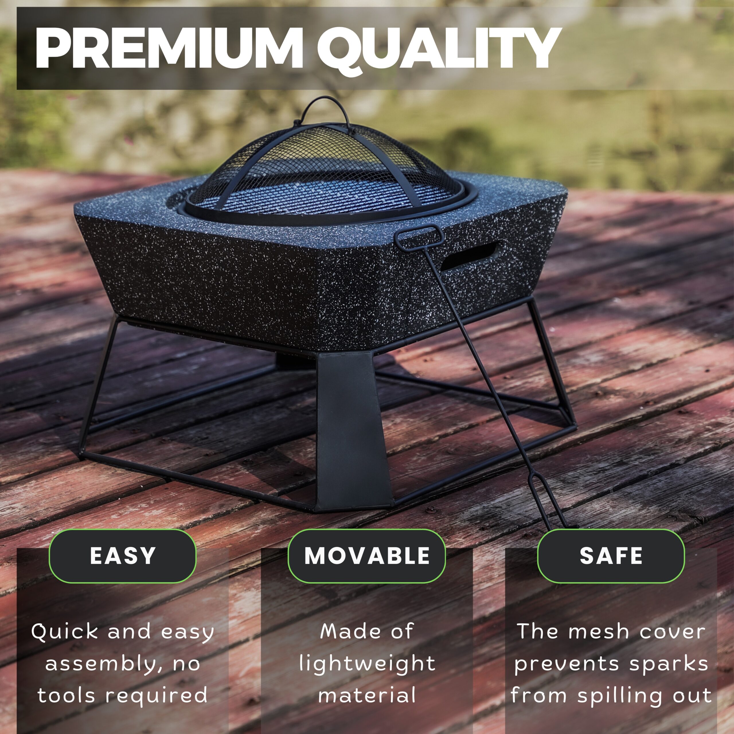 -Safe & Secure: Equipped with a protective safety mesh, this fire pit ensures that sparks are contained, offering peace of mind while you enjoy the warmth of the fire. The included poker not only helps you ignite and manage the flame but also makes it easy to remove the mesh cover, allowing safe operation at all times.