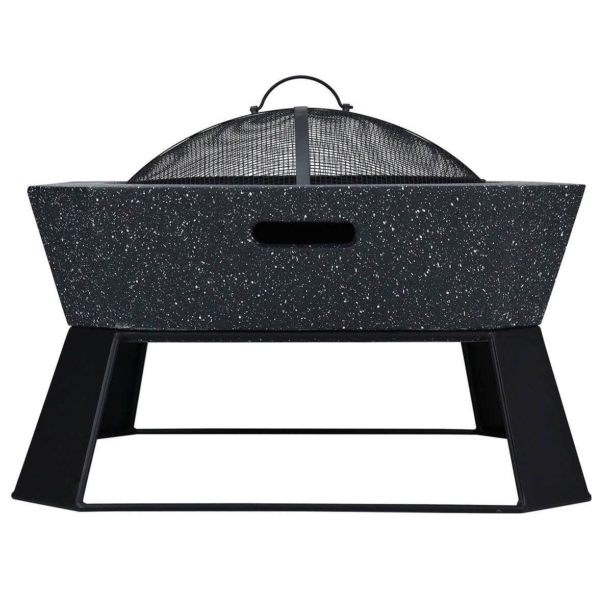 Safety is a top priority with this fire pit. It comes with a protective mesh that prevents sparks from flying uncontrollably, keeping your surroundings safe. The included poker allows you to ignite the flame with ease and safely remove the mesh cover whenever needed. Designed not only for functionality but also as a decorative feature, the fire pit enhances your garden with its sleek and contemporary design.