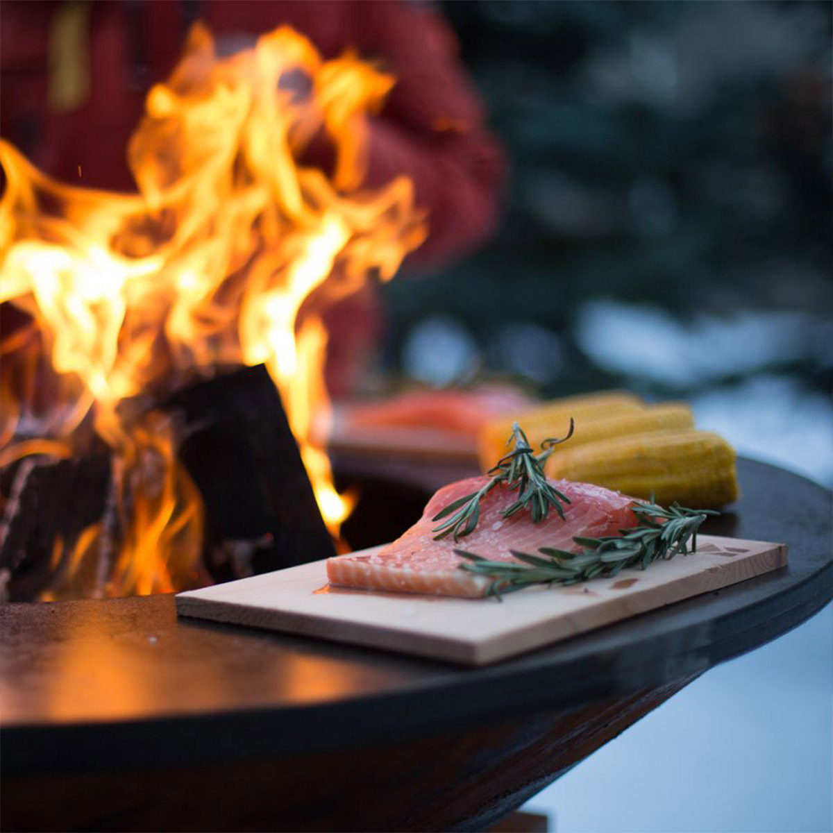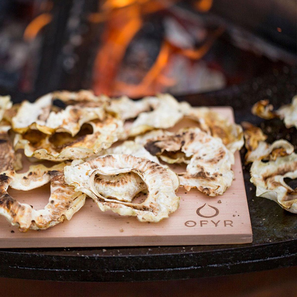 The OFYR Cedar Wood Planks are a multifunctional accessory that can be used on the OFYR. The cedar wood planks both add a delicious smoky flavor to your dishes and slow down the cooking process by about 50%. The planks can also be used to keep food warm on the cooking plate before serving.
