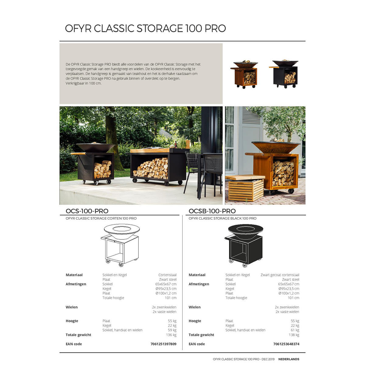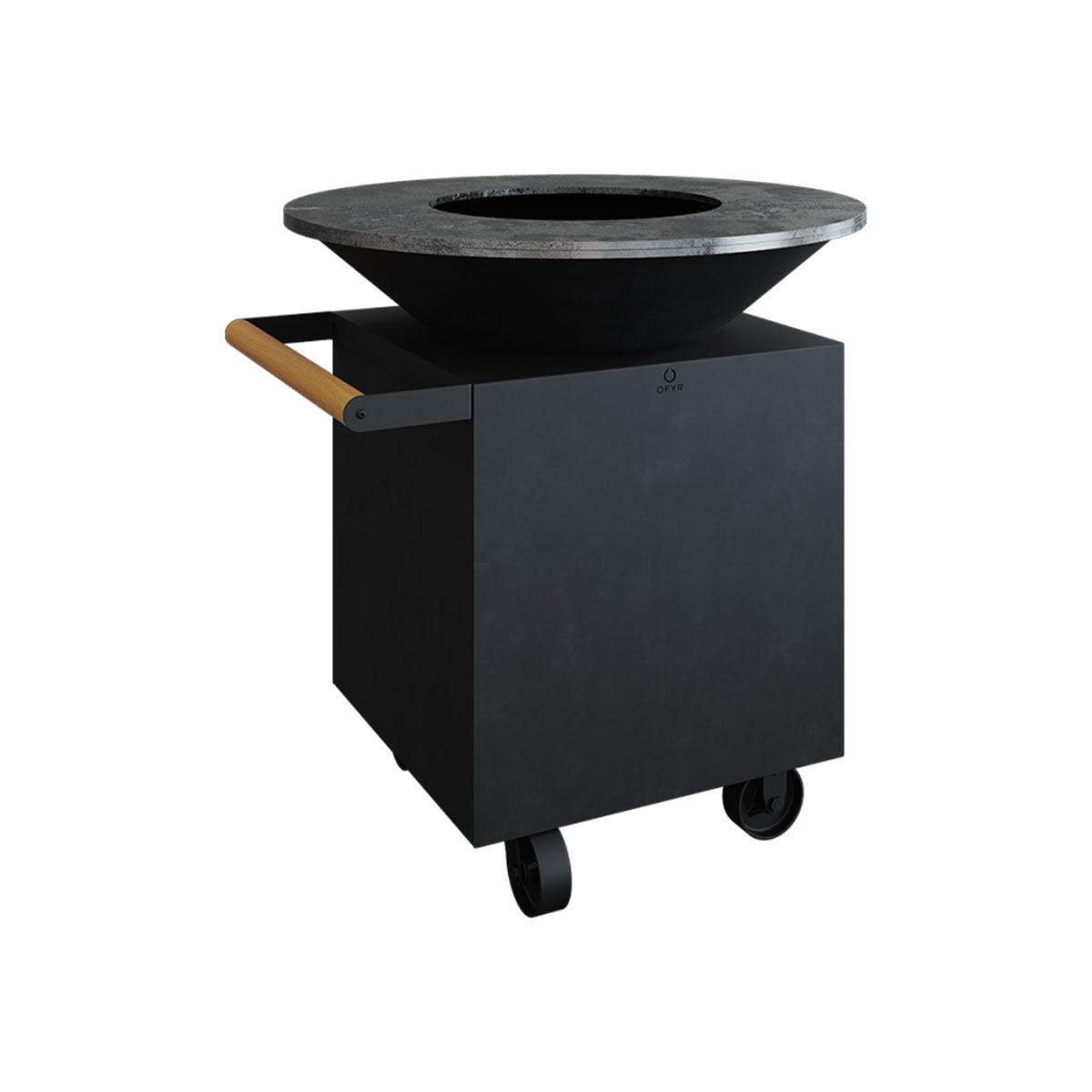 The OFYR Classic 100 PRO has all the characteristics of the OFYR Classic with the added convenience of a handle and wheels. You can easily move your cooking unit around. The handle is made from teak wood, so it is advisable to store the OFYR Classic 100 PRO inside or under a roof. It’s available in 100 cm, in Corten or black-coated steel.