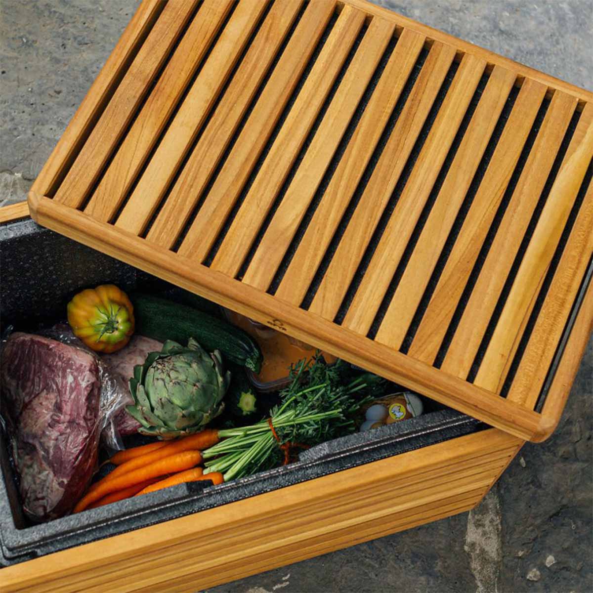 * The teak wood should be oiled regularly. It is recommended to store the OFYR Cooler inside when not in use.