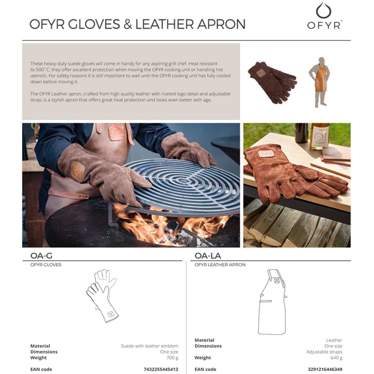 These heat-resistant suede gloves are ideal for any ambitious chef. With a heat resistance of up to 250°C, these gloves offer excellent protection when moving your OFYR cooking unit or other hot parts. For your own safety it is important to allow your OFYR cooking unit to cool down before moving it around. Available in brown and black suede.