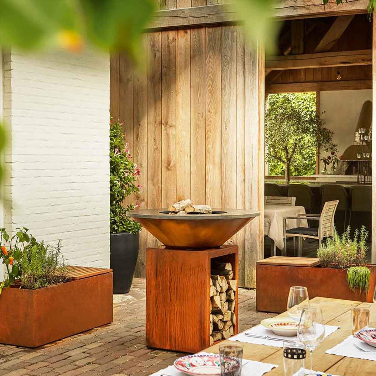 More relaxing moments around the OFYR with our Herb Garden Bench Corten. The integrated teak wooden plank makes a comfortable seat and can be moved to either side of the planter.