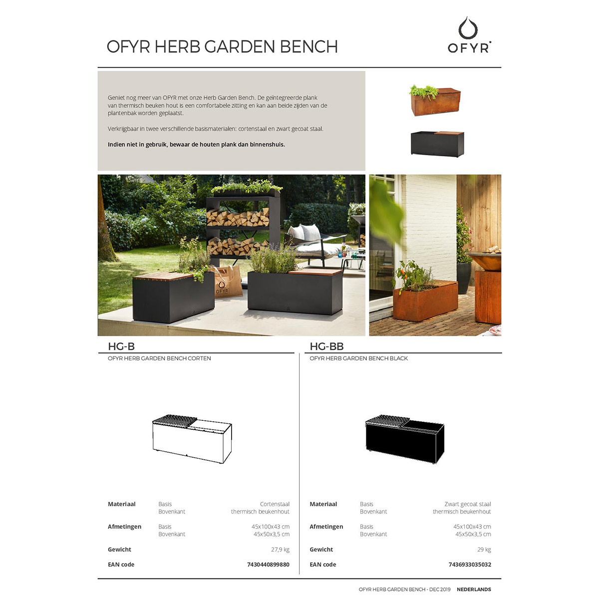 OFYR HOLLAND Herb Garden Bench Corten