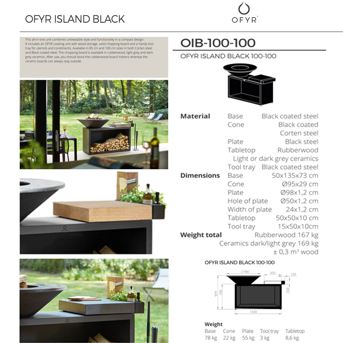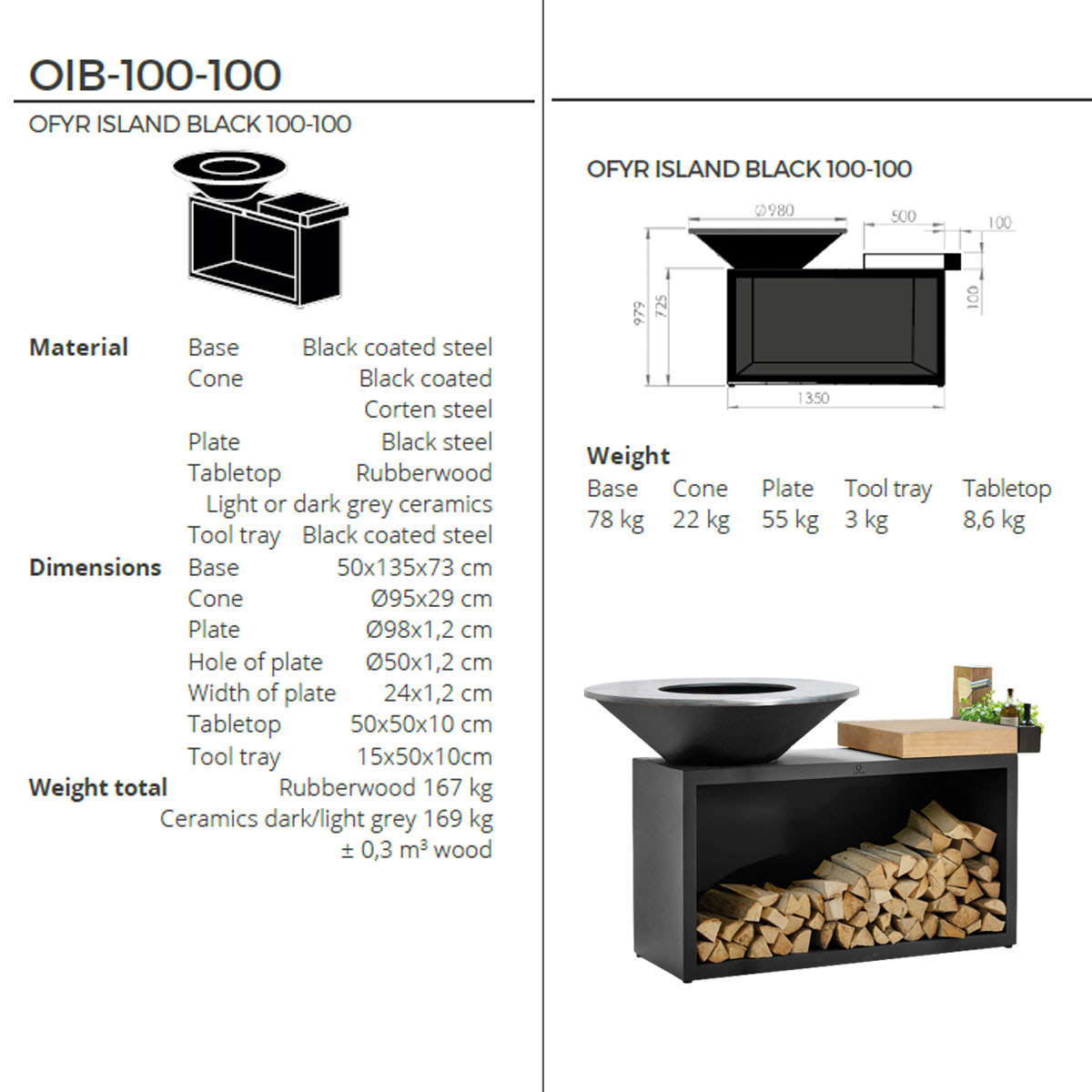 This all-in-one unit combines unbeatable style and functionality in a compact design. The OFYR Island provides everything you need for an ultimate outdoor cooking experience with friends or family. It includes an 85 cm or 100 cm OFYR cooking unit with wood storage, a chopping board and a handy accessories tray for utensils and condiments. The chopping board is available in teak wood or dark grey ceramic.