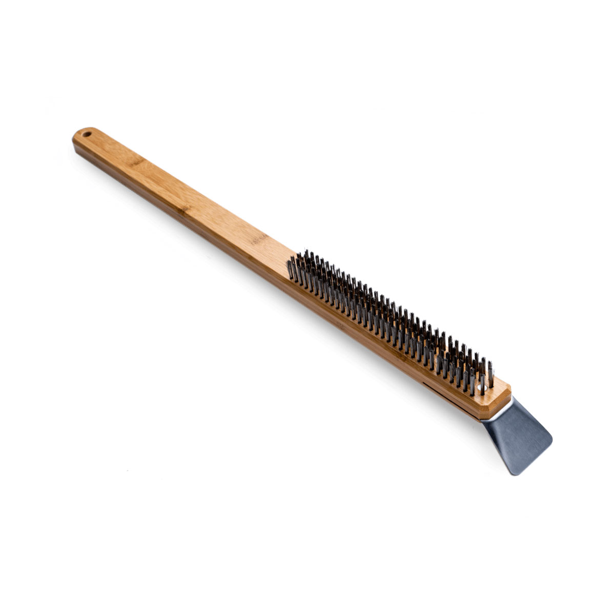 The Ooni Pizza Oven Brush is a 2-in-1 stone baking board brush and scraper tool featuring a comfortable wooden handle, plus a durable stainless steel scraper and bristles. The perfect tool for efficiently and quickly cleaning your Ooni pizza oven after cooking, brush off excess flour with the bristles, then flip to scrape away fallen food.