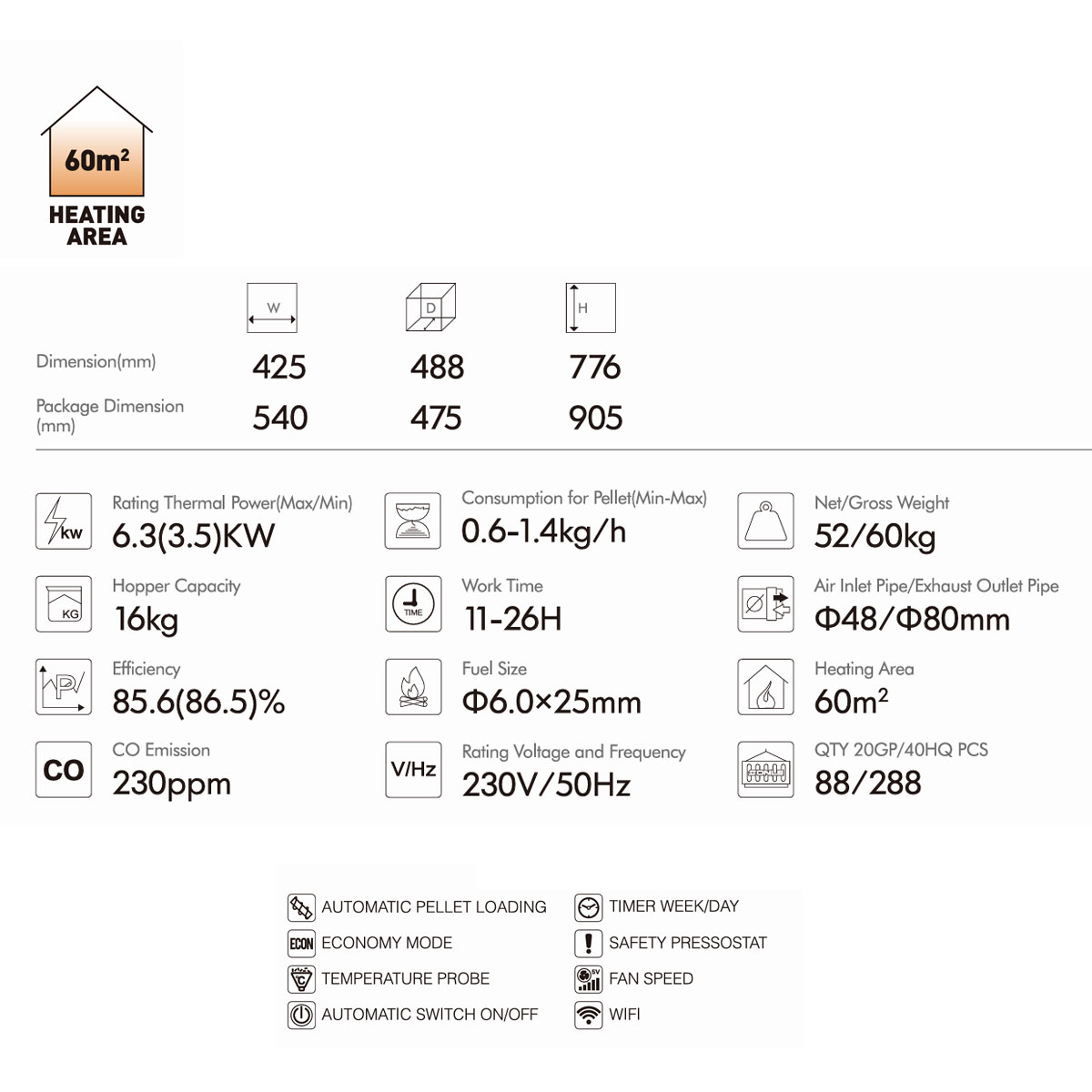 Optimal heat output: 6.5 kw