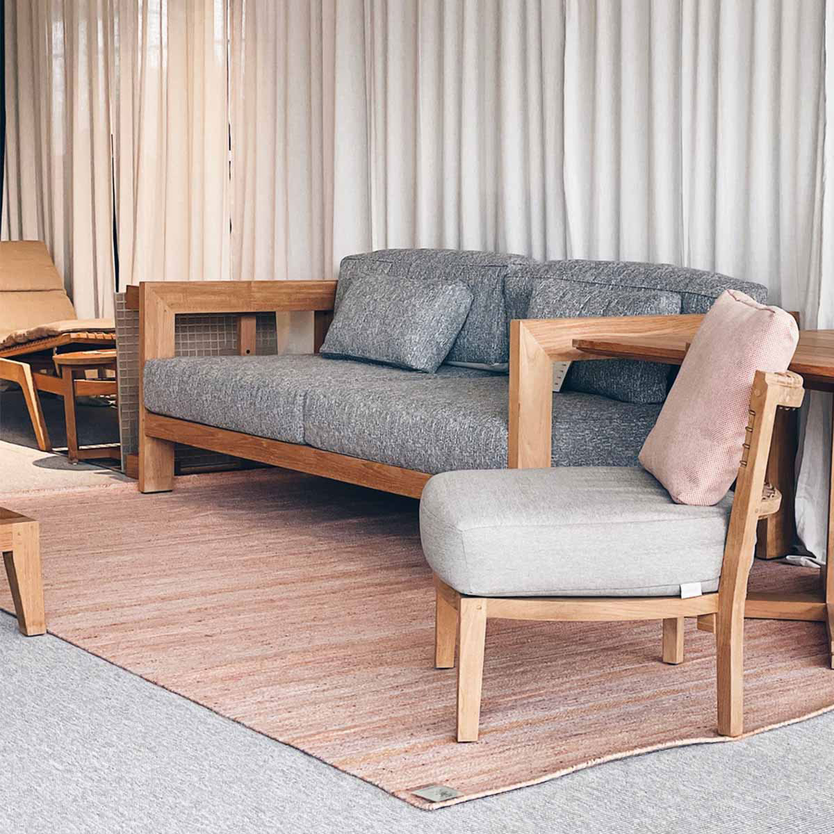 Because we see the outdoor living area as an extension of the indoor living area, we created our own unique range of outdoor fabrics to complement your outdoor terrace or lounge. They are the perfect match for our outdoor candles, as well in style as in color. Designed in Belgium by us, these high quality PET yarn fabrics have been made from recycled bottles. Woven on Dhurrie looms with the utmost precision and care. They are soft but durable. I hope you sense the pride we take in talking about our fabrics. They are truly unique!