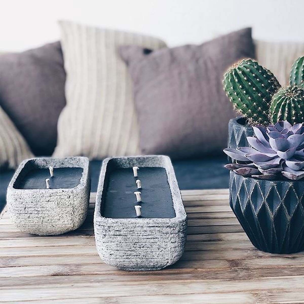 Concrete: One of the materials we use for our outdoor candles is concrete. We try to take pride in using it all its shapes and forms. Always reinforced with fiberglass, it is sturdy, durable but always elegant. Whether it is coated concrete or natural, our concrete candles will never cease to amaze you with their unique style