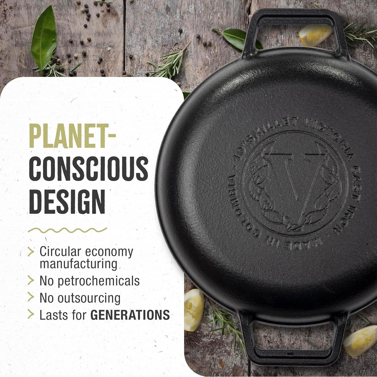 Victoria has manufactured quality cast iron cookware in our own factories in Colombia—never outsourcing—since 1939. Our cast iron products are made with resource-efficient materials, are economical, outlast traditional cookware, and offer reliable cooking for years to come.