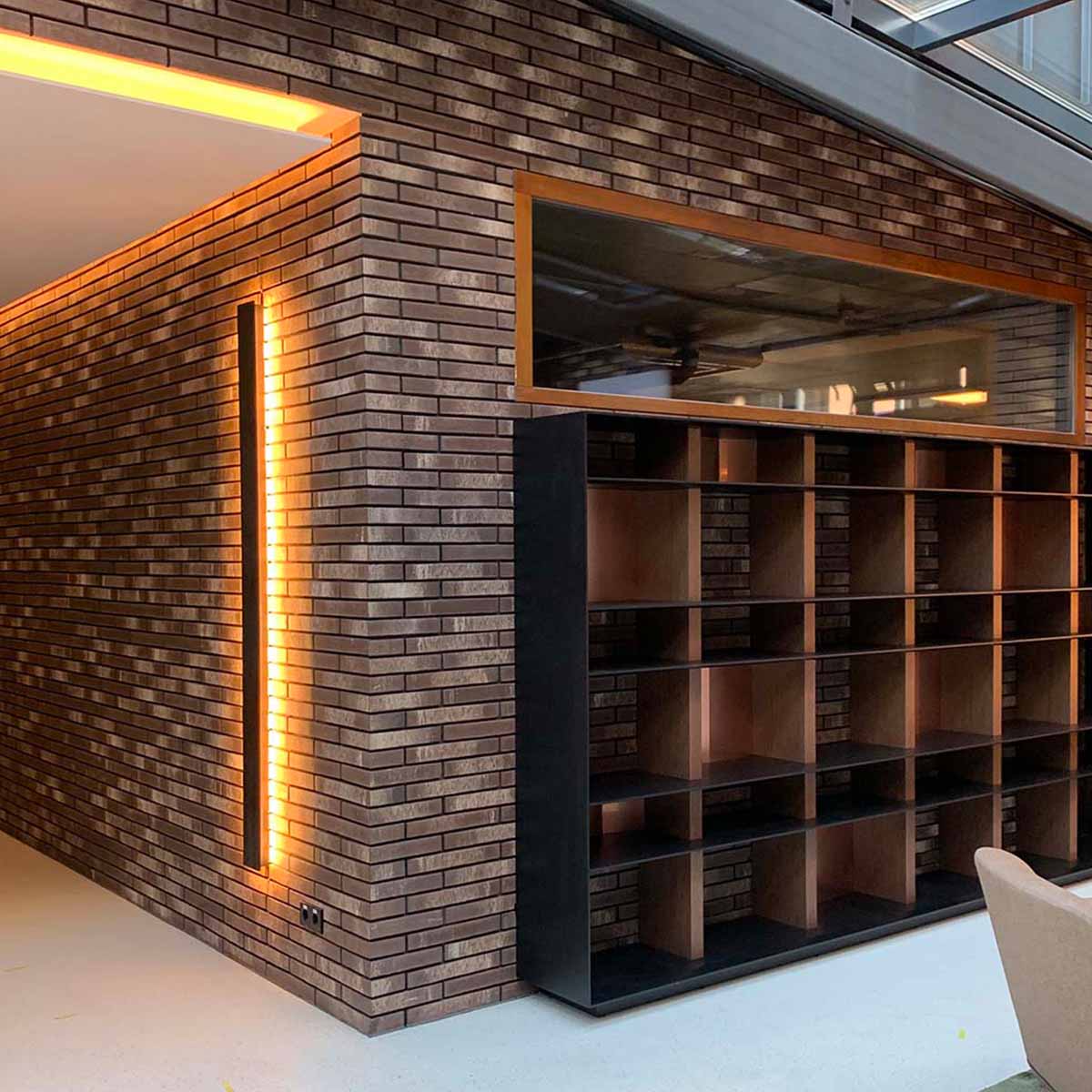 The surfaces provide unique “vibes” to each project and combine all the advantages of modern industrial production with the look of old craftsmanship. Feldhaus thin bricks offer countless surface textures: smooth, creased, sanded, engobe, rustic in hand-mold, water struck, and back side installation looks. From bright red to various colorful blends and elegant dark tones.