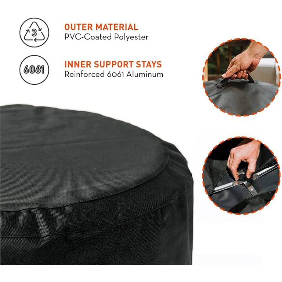 Materials: PVC Coated Polyester, 100% waterproof and weather resilient. Reinforced 6061 Aluminum