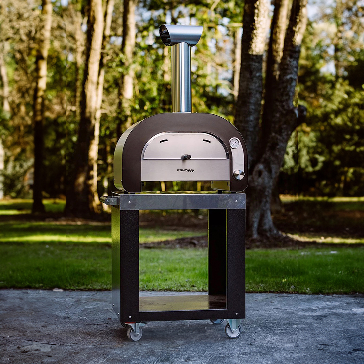 Here it comes, the multifunctional oven rack for all pizza ovens of the Fontana Forni manufactory. Set up your outdoor kitchen in no time at all. The table is mobile thanks to four castors.