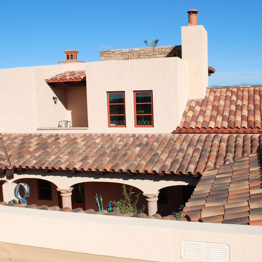 A double curvature mixed “S” roof tile where eaves and ridge tiles assure to design and functionality to provide easy-to-install roofs with the special characteristic beauty of the Mediterranean roofs.
