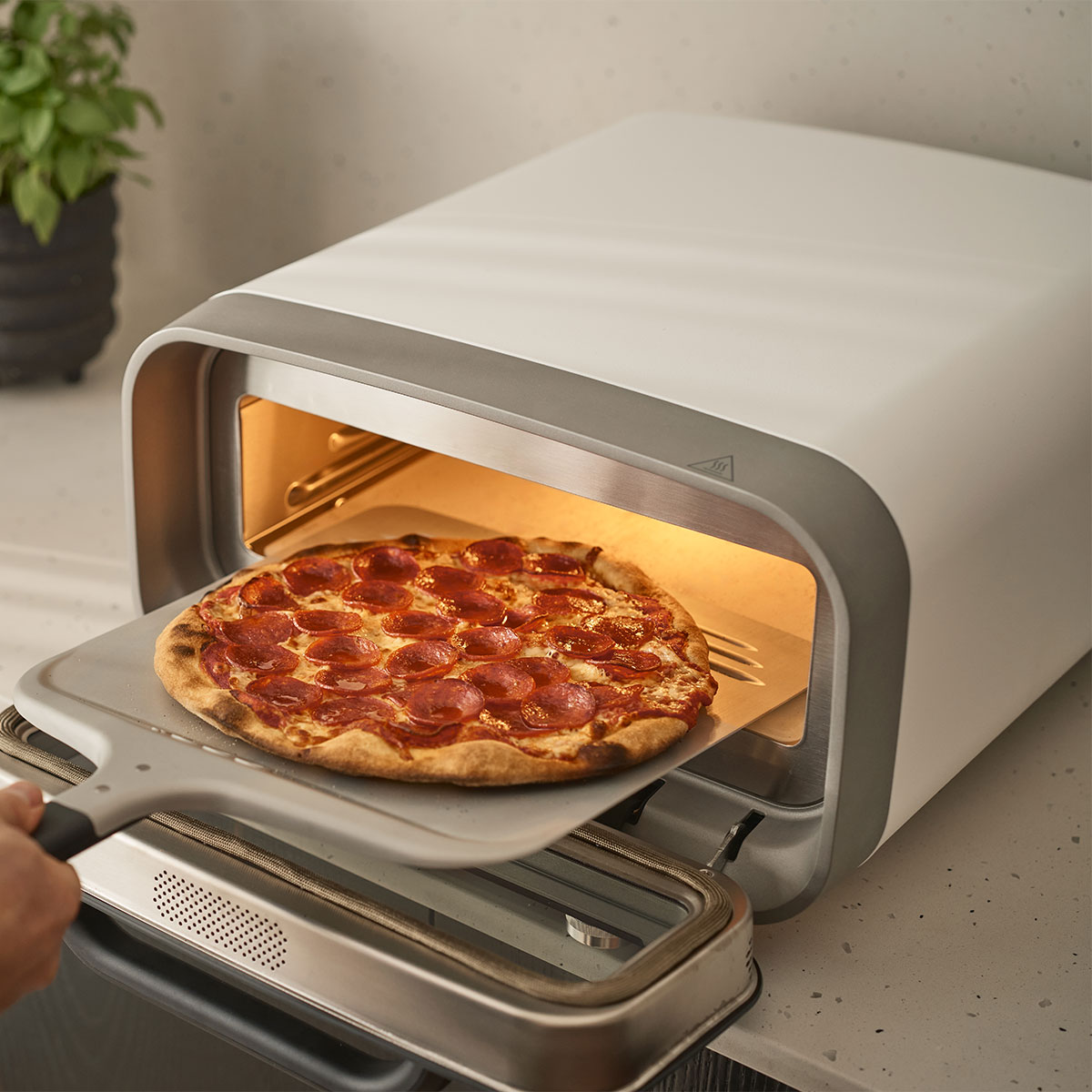 Unlike fuel-burning ovens, the Ooni Volt is comfortable indoors or outside. Plus, there’s no messy charcoal ash to clean up.