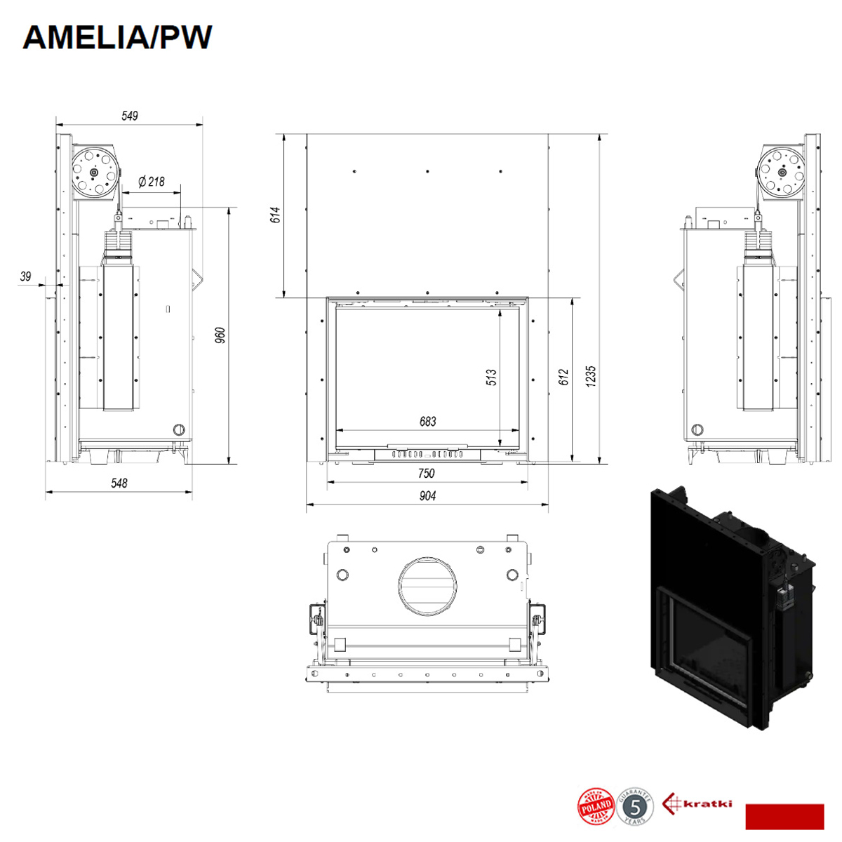 Decorative, heat-resistant glass that can withstand temperatures up to 660°C. It gives a fireplace a modern and elegant look, visually enlarges the front of the insert.