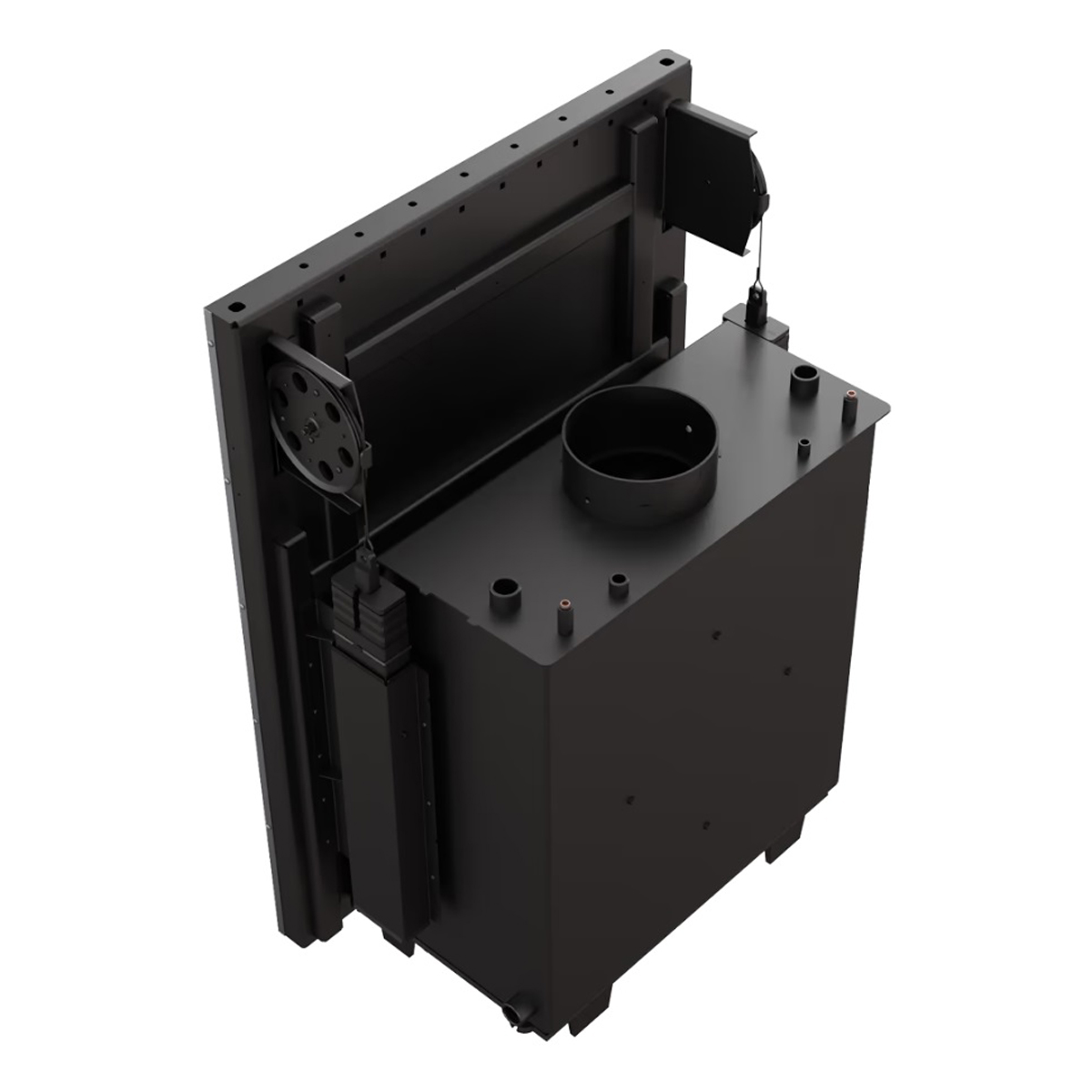 Double door opening system – lift up (Guillotine) and side opening. Lifted door makes loading of wood easier and mechanism of side door opening allows to clean the glass.