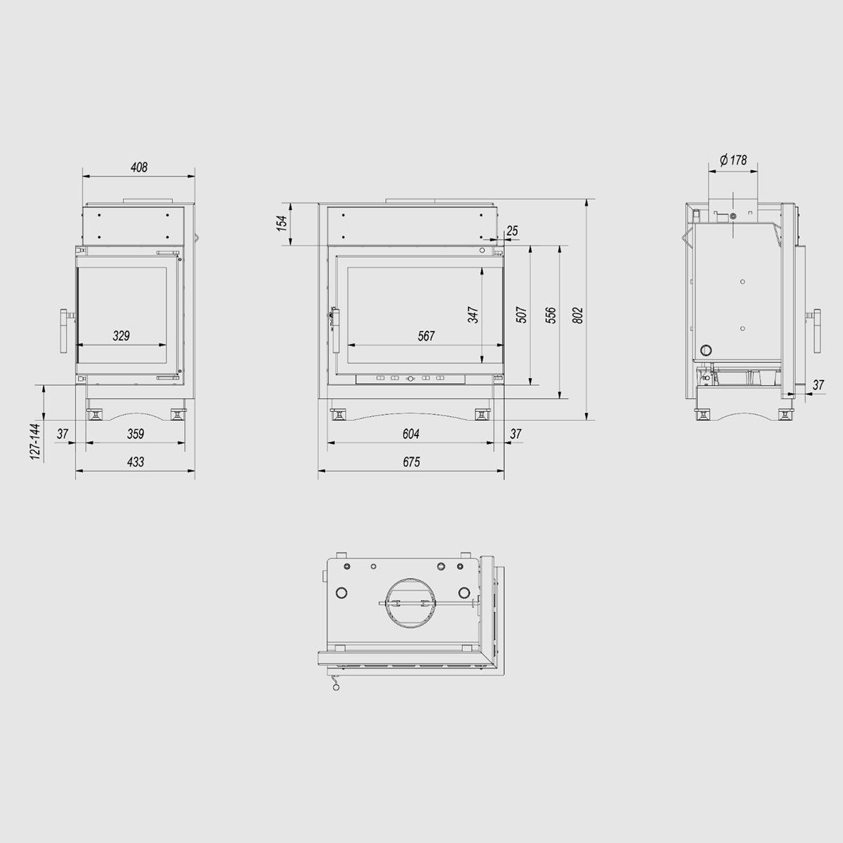 Front of insert is equipped with a heat-resistant ceramics that can withstand temperatures up to 800oC.