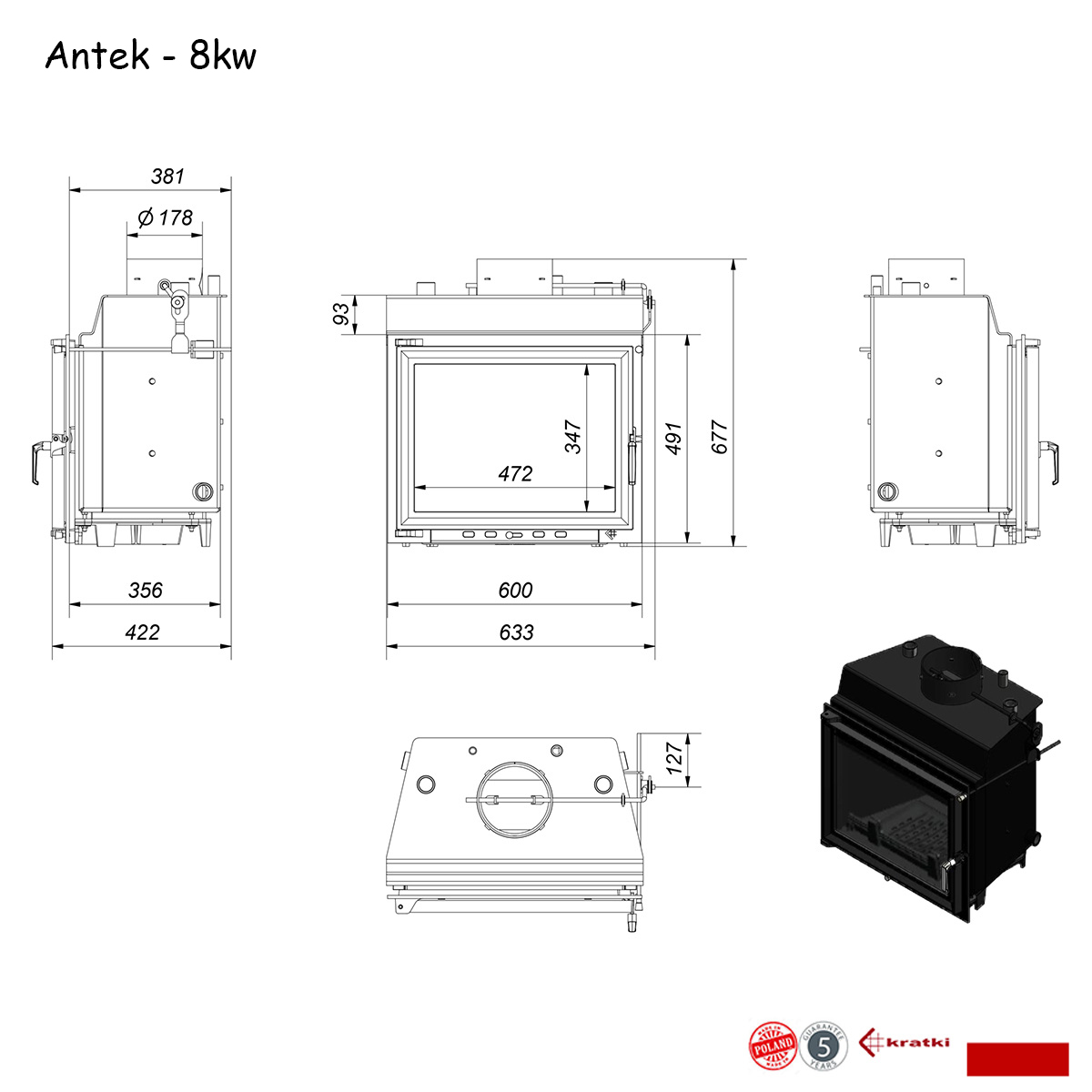 KRATKI POLAND Wood Boiler 8 KW Lateral Antek