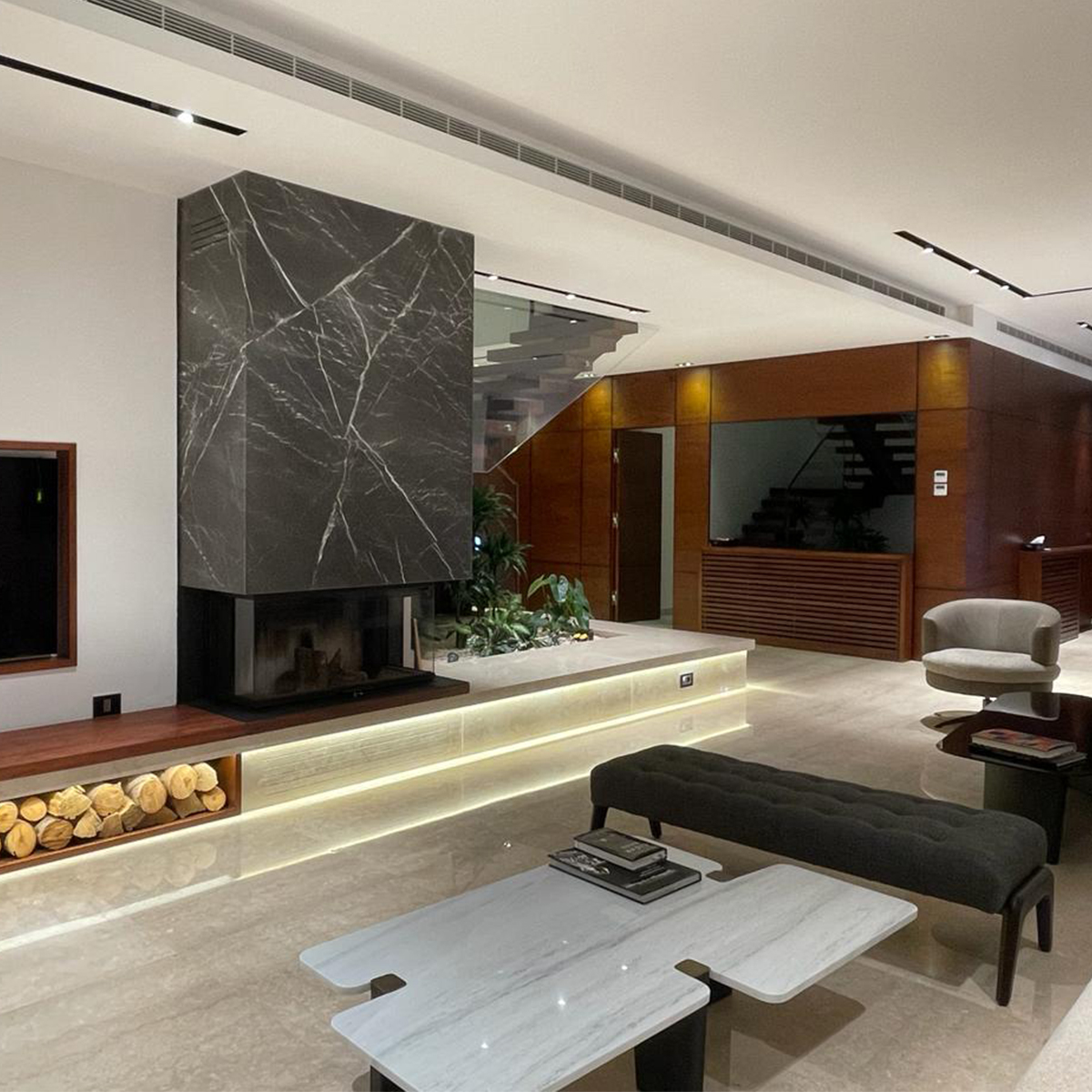 A modern fireplace with a magnificent and cozy fire that will fill your spirit with inspiration and will relax your mind.