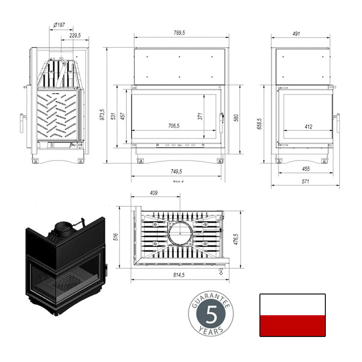 KRATKI POLAND Wood Fire Corner Left Oliwia Lateral