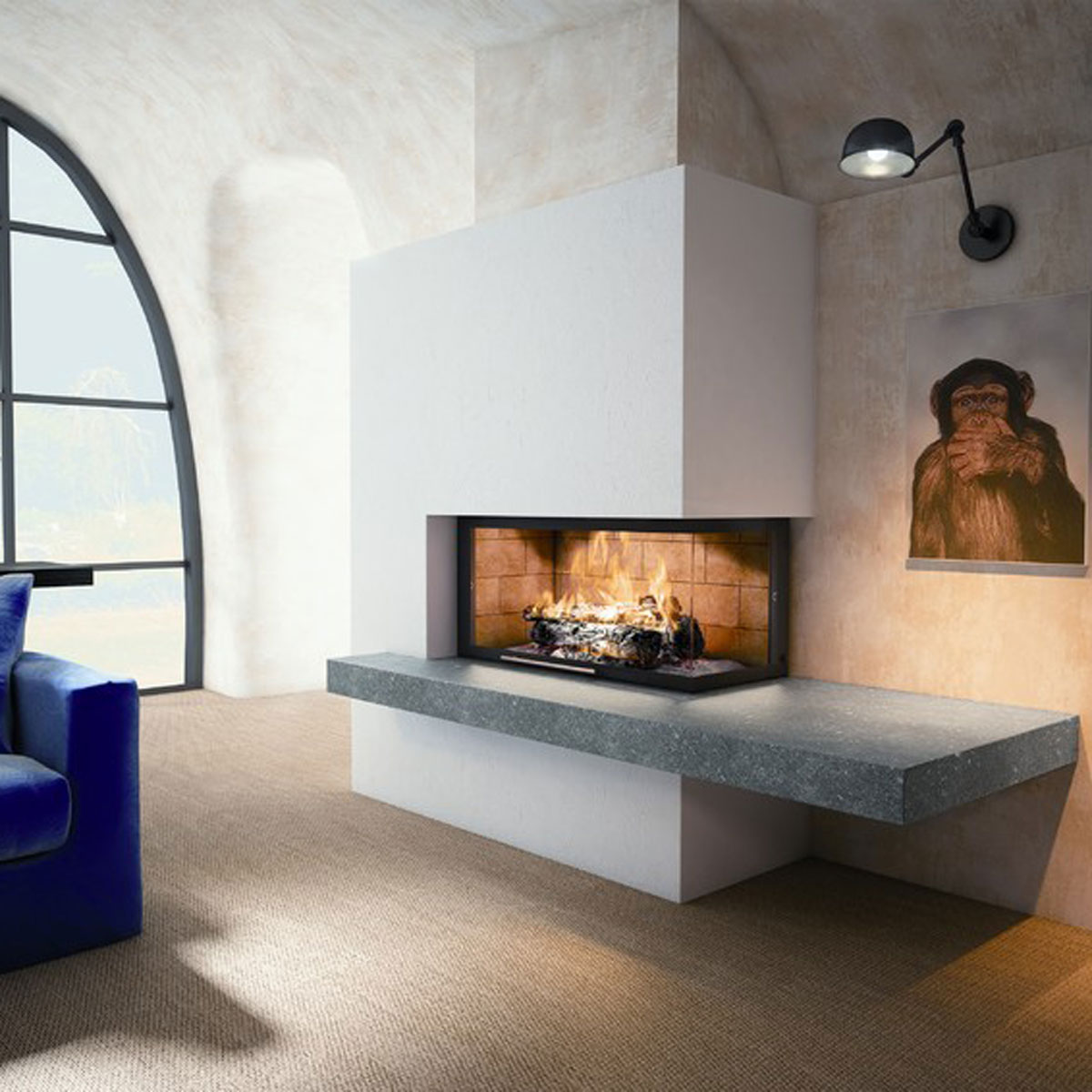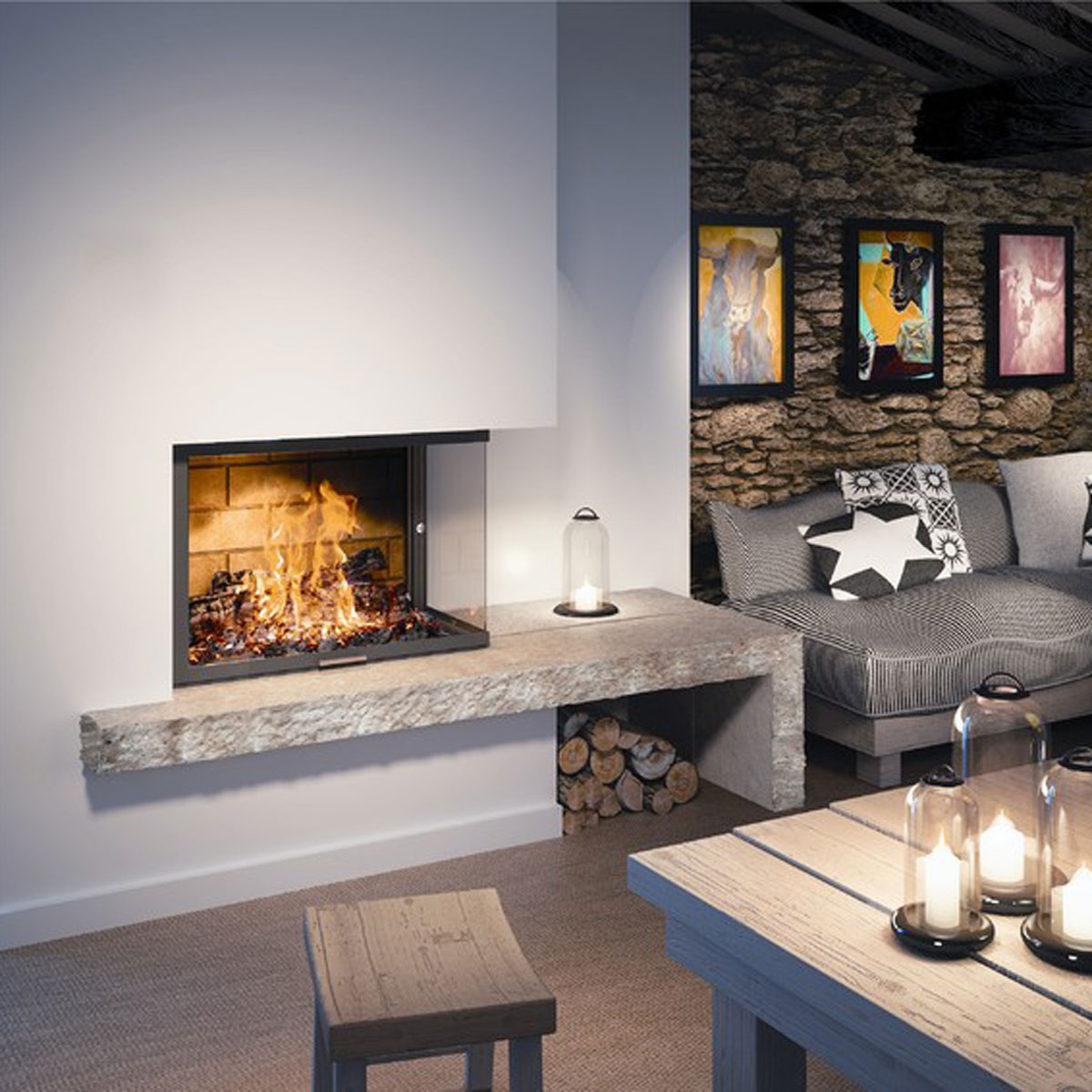 The fireplace that allows you to see your corners under new angles. Lateral fireplace hearths easily adapt to any kind of implantation. Available in several sizes and sizes to meet your heating needs and match your chimney project. Enjoy an uninterrupted view of the fire thanks to a large glass-ceramic glass and a door design without post. The system of opening of the door makes it possible to make disappear the door completely in the covering and to benefit from a real fire as an open chimney.