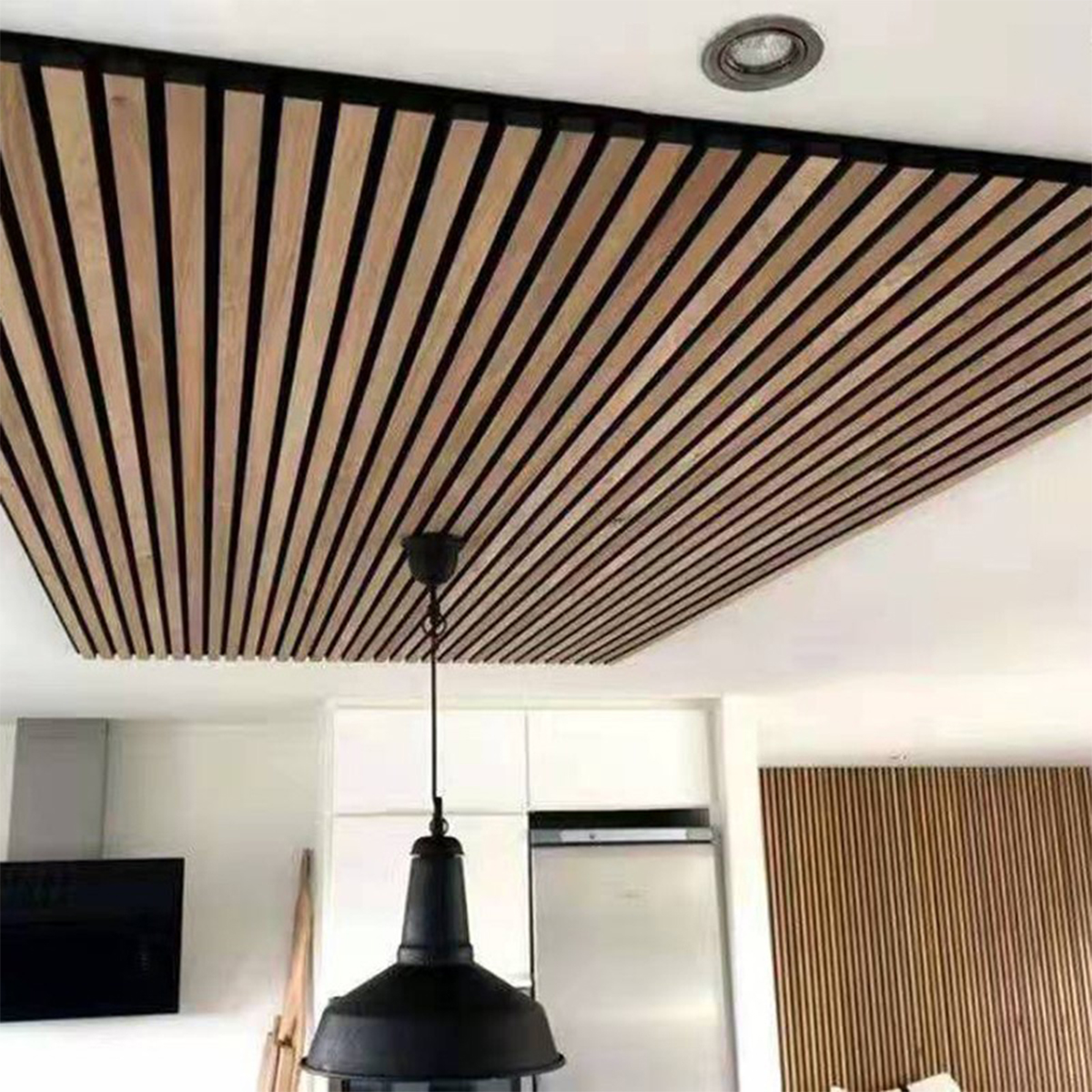 The advantage of a Slat acoustic panel: Sound absorption, Fire resistance, Decorative aesthetics.