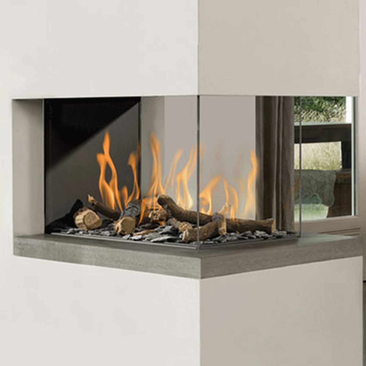 This large hearth offers a stunning view of its hypnotizing flames.