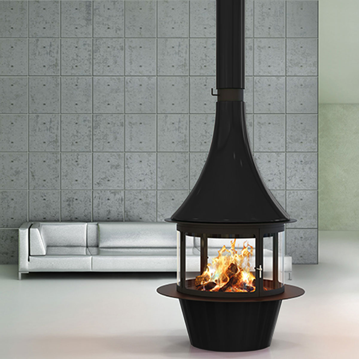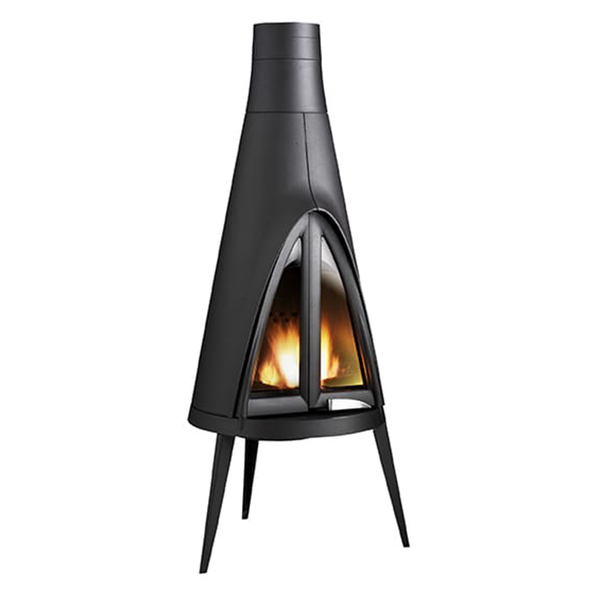 Designed for efficient wood burning, it combines contemporary aesthetics with practical heating.