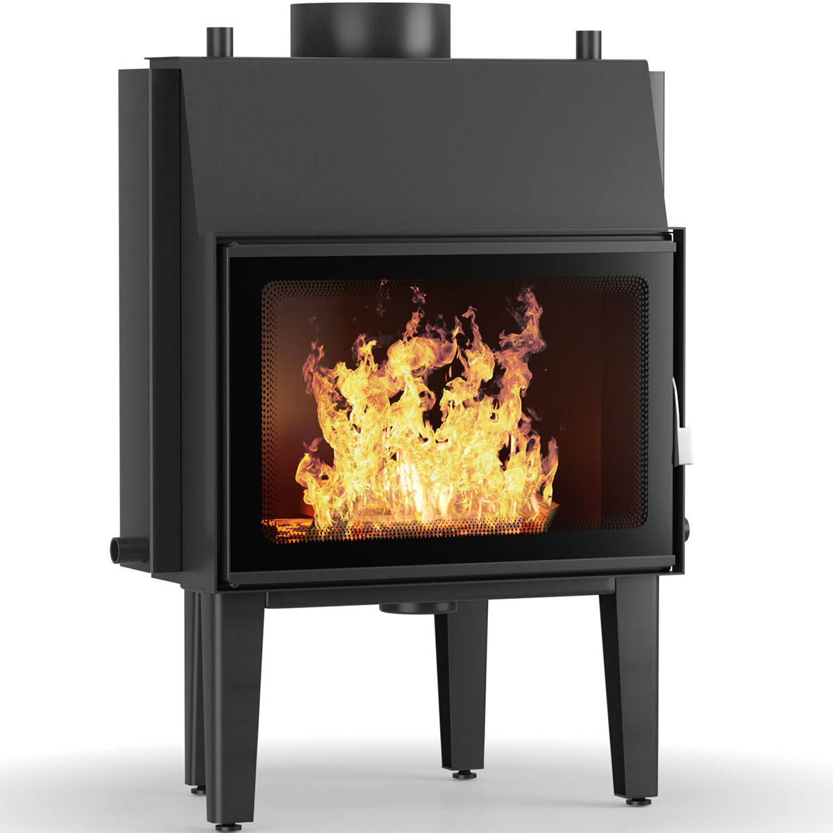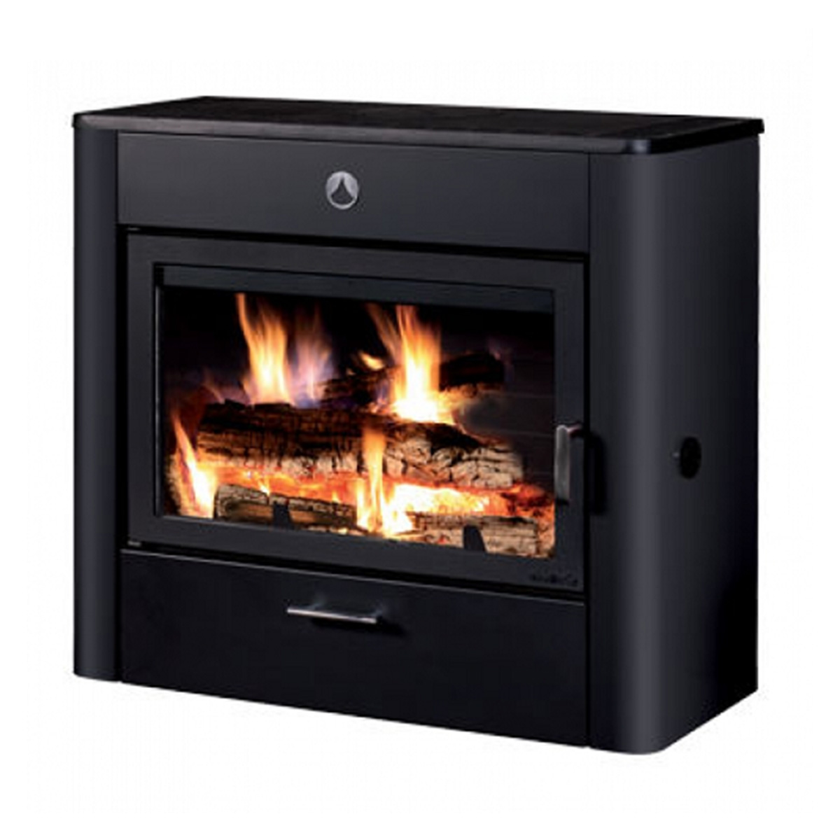Efficient and elegant, this wood stove in sleek black offers timeless warmth for any home.