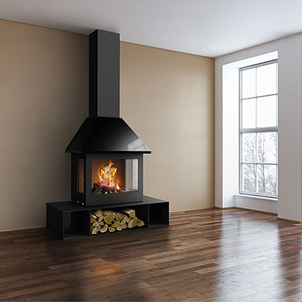 Combines modern design with efficient heating.